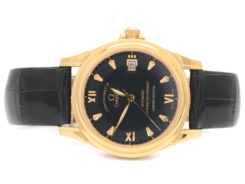 OMEGA, De Ville, Co-Axial, Chronometer, s.k. "Pie-pan", Cal 2500, Movement no. 60364767, Serial no. 60364767, PIC no. 5931.81.00, Ref no. BG 168.1848, Case no. 168.1848, men´s wristwatch, 37,5 mm, 18K pink gold, self winding (Co-Axial), sapphire crystal, date, leather strap, folding clasp in 18K pink gold, certificate, December 1999, case, paper box. Limited and numberd (No. 997/999).