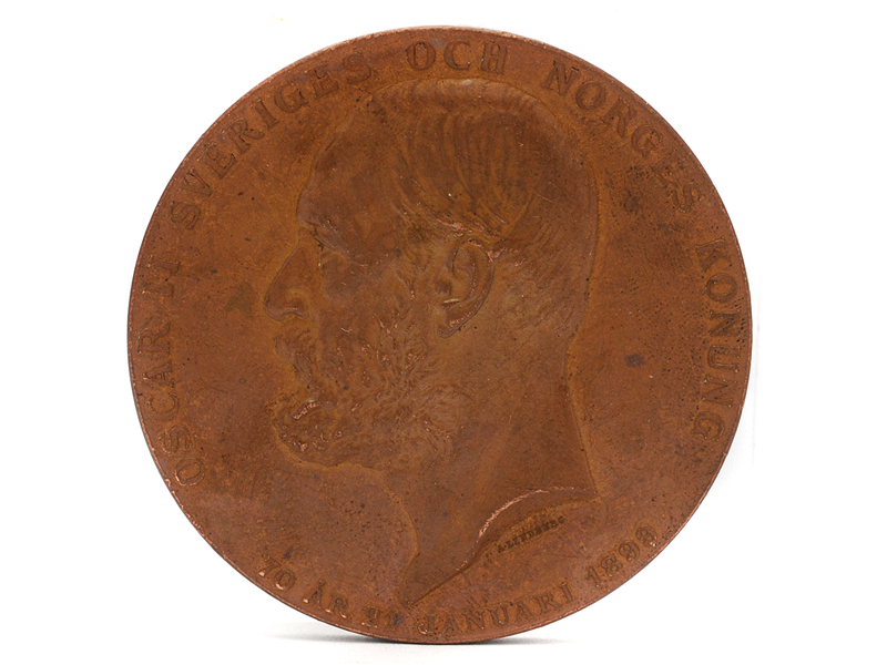 MEMORY, bronze, Oscar II, 1829-1899, diameter 56 mm, weight 66,1 g, by Adolf Lindberg.