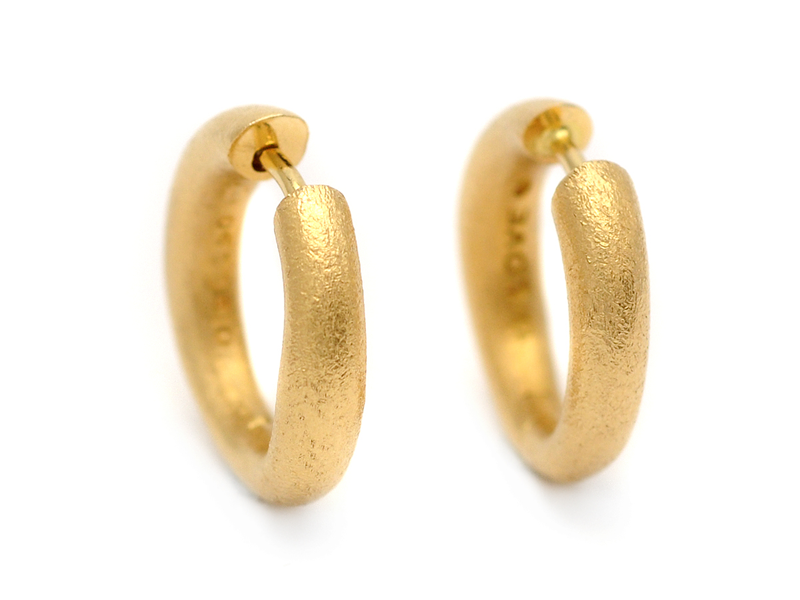 OLE LYNGGAARD, earrings, Love, 18K gold, matte finish, hoops, diameter 1,4cm, weight 6,6 g, original box.
