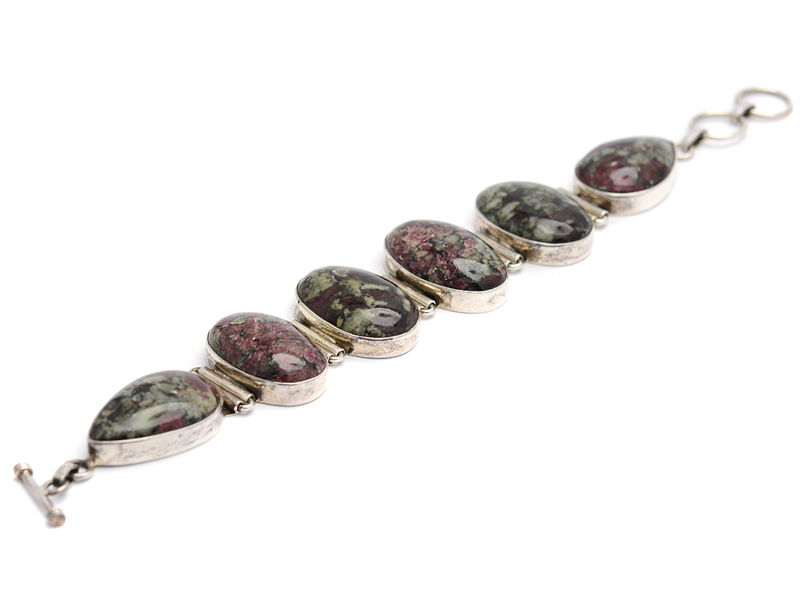 BRACELET, sterlingsilver, eudalit stones, length 19-21 cm, weight 55,2 g.