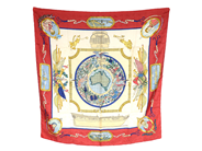 SCARF, HERMÈS, Le Geographe, Sandra la Roche, fr. 1993, 100% silk jacquard, Jacquard; kangaroo and ankare, 90x90cm. This are den enda Hermès design with This jacquard pattern. Some stain.