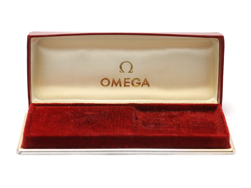 CASE, for Omega men´s wristwatch, red, 141 x 57 x 27 mm, approx 1975.