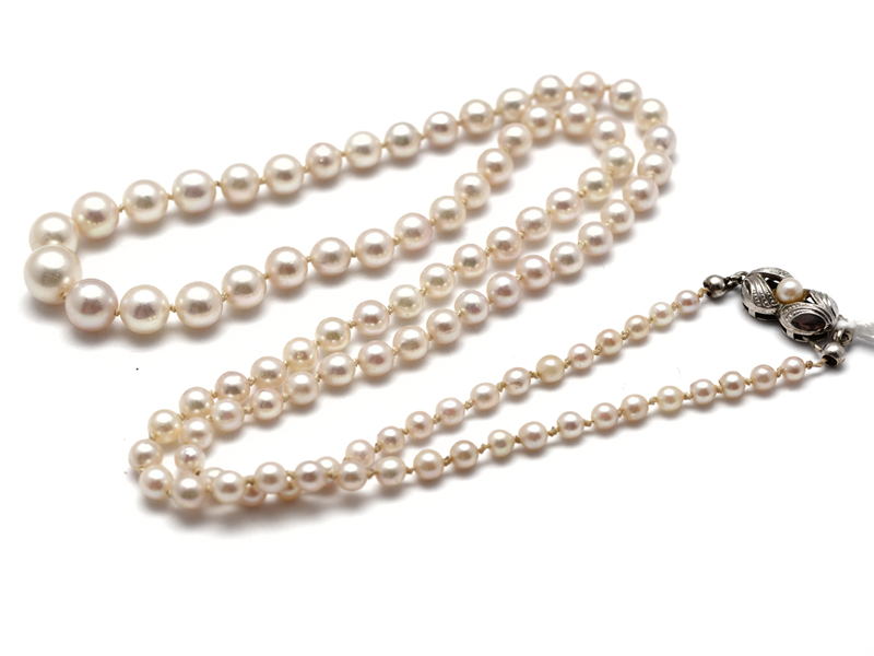 Pearl necklace, graduated 56cm Silver clasp S835 15,2g