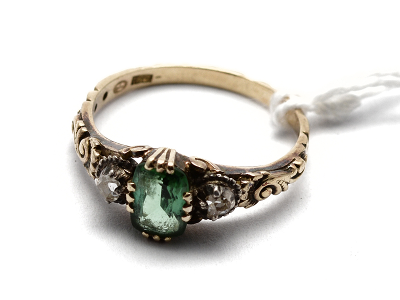 Ring 18K Ø17 2,7g, with stones and details by silver