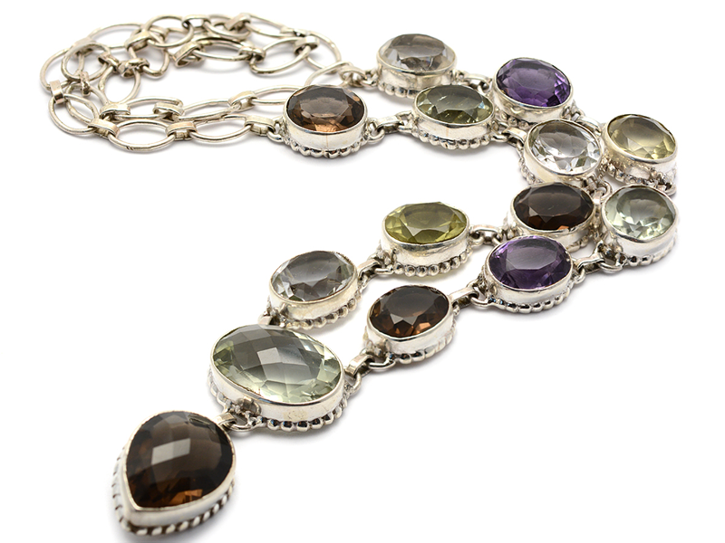 NECKLACE, sterlingsilver, rock crystal, amethyst, citrine, green quartz, smoky quartz, length 52 cm, weight 47,2 g.