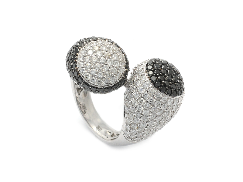 RING, 18K white gold, 160 black brilliant cut diamonds approx 2,97 ctw, 160 brilliant cut diamonds approx 2,41 ctw, approx TW-W/P, size 17 mm, weight 12,0 g.