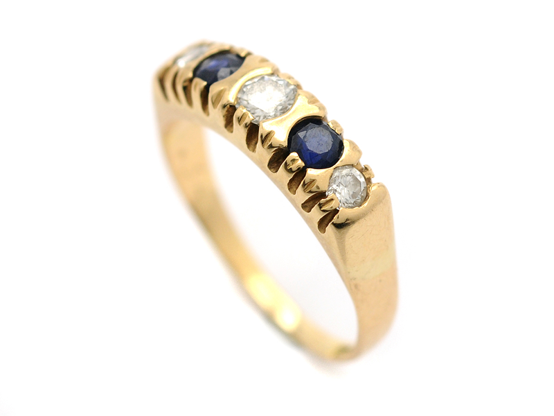 ETERNITY RING, 18K gold, 3 brilliant cut diamonds approx 0,35 ctw, approx TW(G)/VS, 2 blue sapphires approx 0,30 ctw, 1960s, size 18 mm, weight 4,5 g.