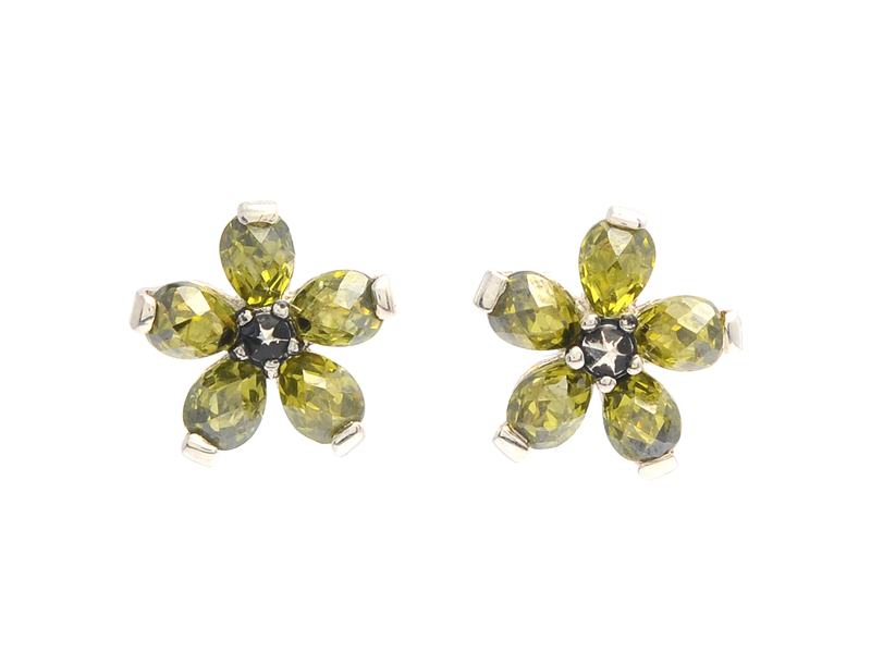 THOMAS SABO, earrings, sterlingsilver, green stones, flowers, pushback.