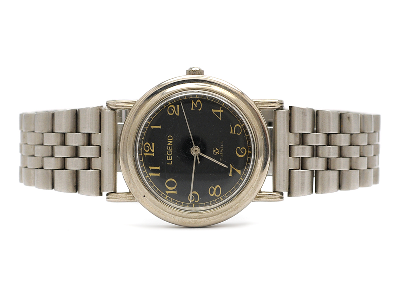 LEGEND, men´s wristwatch, 32,5 mm, base metal, plastic crystal, damaged dial, approx 1965, metal bracelet not original.