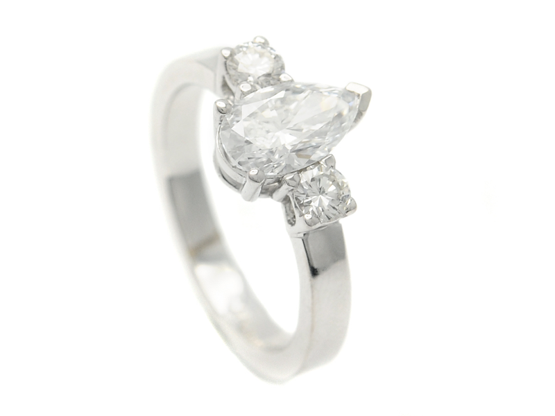 RING, 18K white gold, pear shaped diamond, 1,07 ct, River(D)/SI1, HRD certificate 14014631002, 2 brilliant cut diamonds, 0,30 ctw, approx TW-W/VS, size 17 mm, weight 5 g.