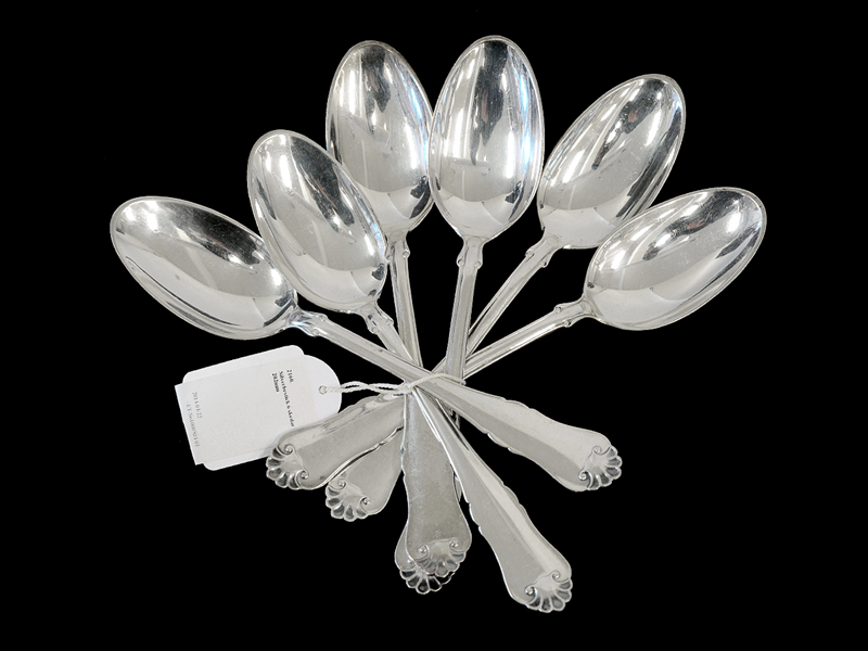 Silver cutlery 6 tablespoons 202mm, snäckmodell, danskt silver 381gr