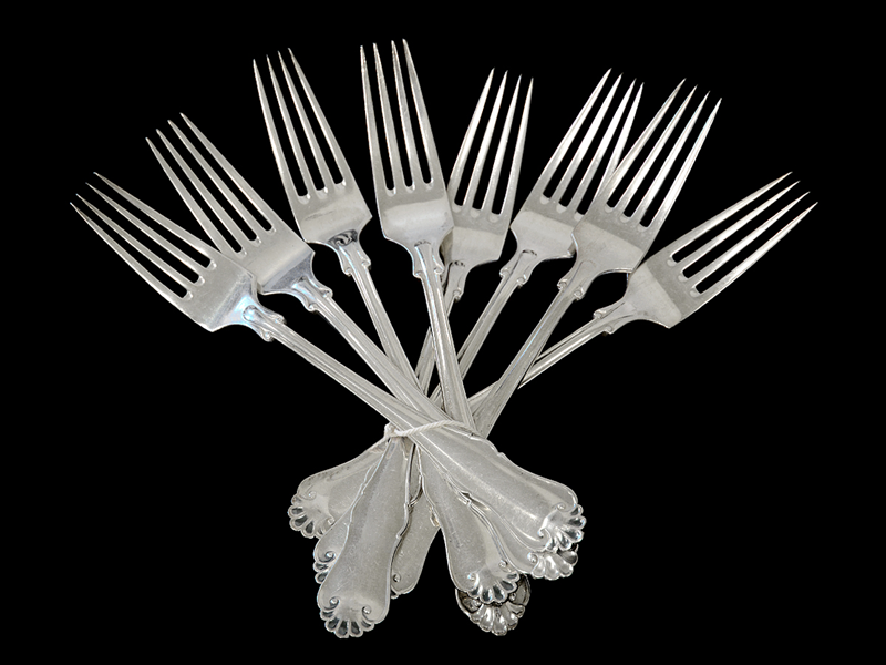 Silver cutlery 8 items forks 176mm, snäckmodell danskt silver 355gr.