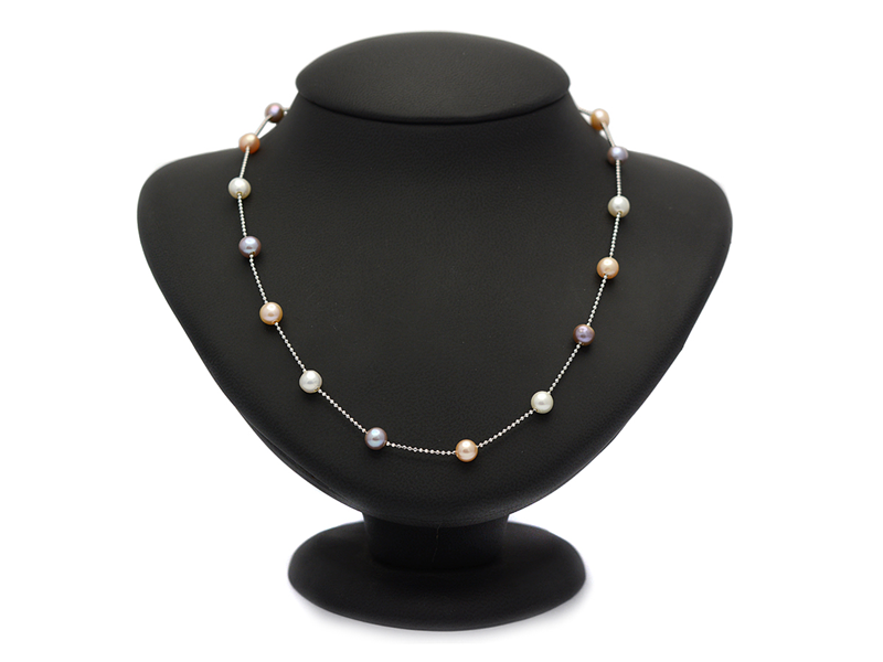 NECKLACE, sterlingsilver, cultured freshwater pearls, dyed purple, white and pink, approx 6 cm, length 54 cm, adjustable clasp which you can attach in optional pearl.