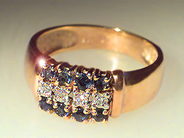 RING, 18CT gold with cabochon- slipad sapphire and brilliant-cut diamond approx 0.04 ct. ringsize 17 3/4 mm.