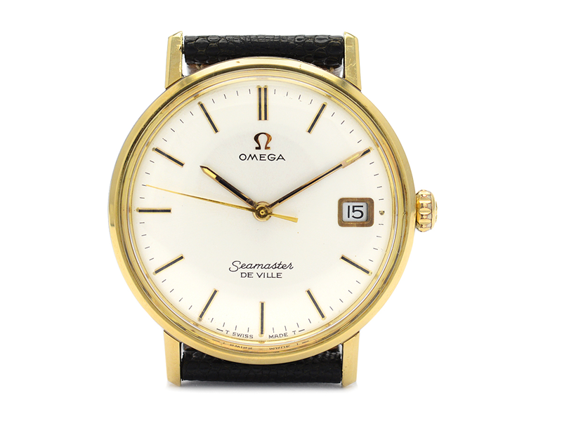 OMEGA, Seamaster De Ville, Cal 613, Serial no. 26169373, Ref no. CD 136.020, Case no. 136.020 SP, men´s wristwatch, 34,2 mm, gold on steel, manual winding, plastic crystal, date, leather strap, approx 1968.
