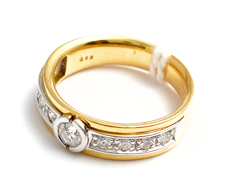 Ring 18K double-dyed with diamonds 1xca0,20ct 8xca0,04ct Ø17¾ 5,9g