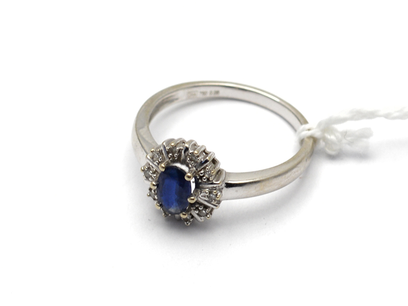 Ring white gold 18K 3,1g Ø17, with blue stone and small diamonds 9xca0,005ct, according to engraving 0,005ct