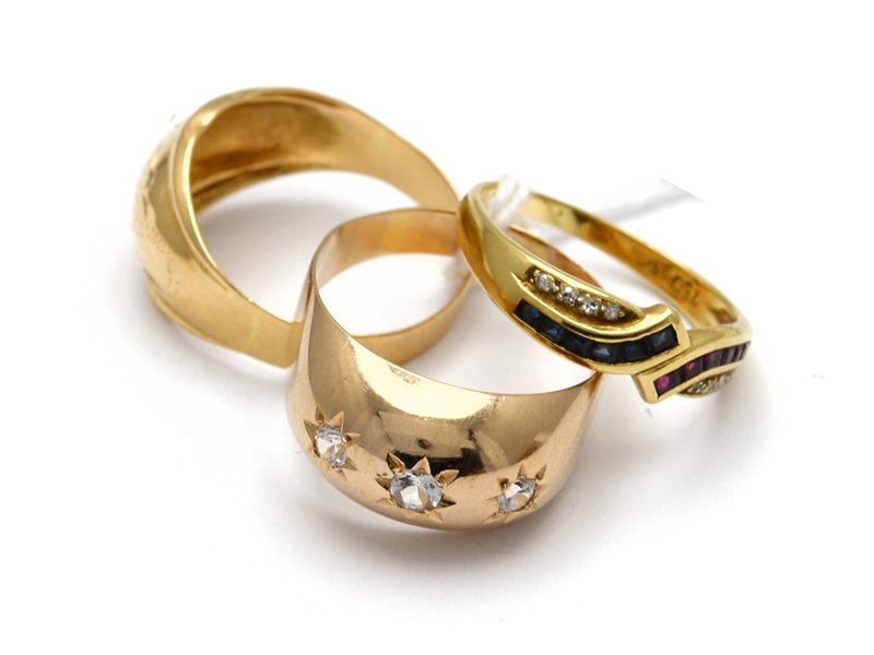 Rings 3 items 18K skew two with stones 7,7g