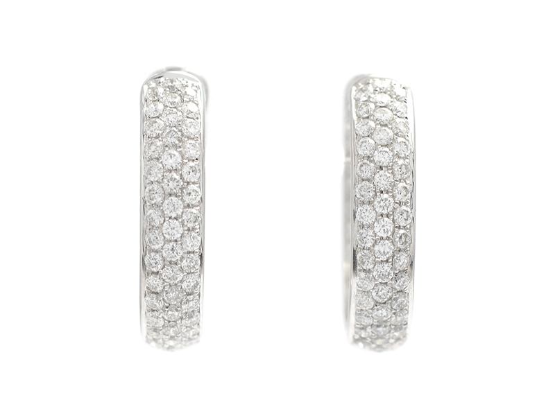 EARRINGS, 18K white gold, 138 brilliant cut diamonds 1,30 ctw, approx TW-W/VS-SI, huggies, weight 6,1 g.
