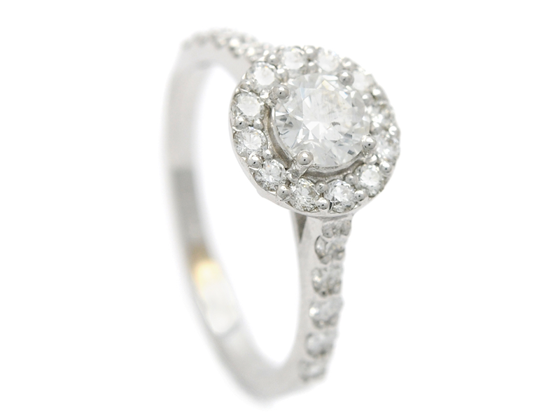 RING, 18K white gold, brilliant cut diamond 0,50 ct, TW(F)/SI2, copy on HRD certificate 11034138035, 22 brilliant cut diamonds approx 0,60 ctw, approx TW(G)/VS, size 17,25 mm, weight 3,1 g.