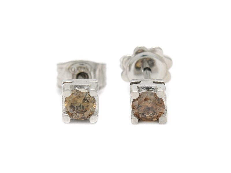 SINGLE-STONE EARRING, 18K white gold, 2 bestrålade brown brilliant cut diamonds approx 0,52 ctw, approx Piqué, pushback, weight 2,2 g, notch on one of the diamonds.