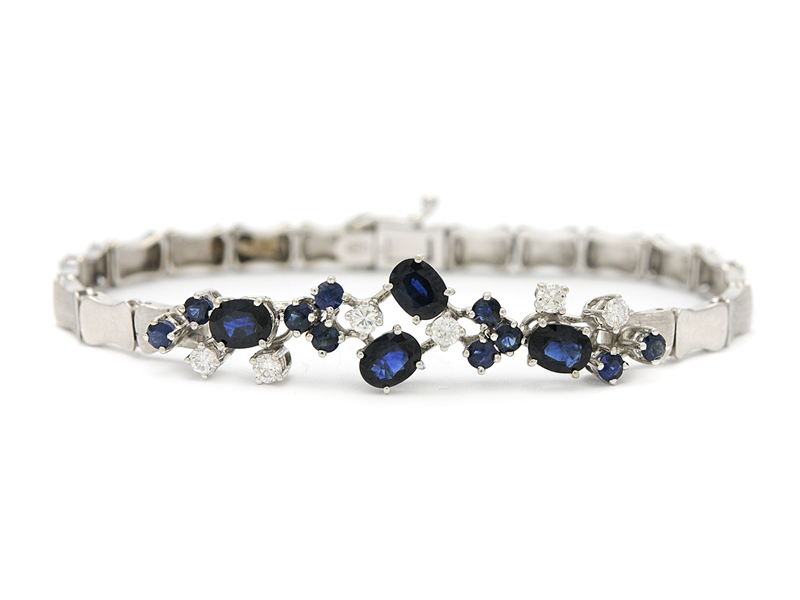 BRACELET, 18K white gold, 14 blue sapphires approx 2,20 ctw, 6 brilliant cut diamonds approx 0,45 ctw, approx W(H)/VS-SI, length 18 cm, weight 13,6 g.