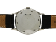 JAEGER-LE COULTRE, men´s wristwatch, 35 mm, Cal K800/C, Serial no. 1423420, Ref no. E 284, Case no. 777560, steel, manual winding, plastic crystal, leather strap, approx 1960.