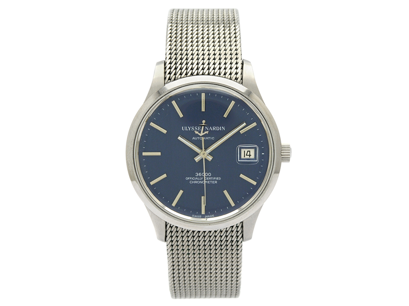 ULYSSE NARDIN, 36000, Chronometer, Cal NB 11 QU, Movement no. 040585, Case no. A 261, men´s wristwatch, 36,5 mm, steel, self winding, plastic crystal, date, original bracelet, chronometer certificate, approx 1973, case.