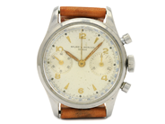 BAUME & MERCIER, Geneve, "Base 1000", Cal Landeron148, Ref no. 1922, Case no. 580177, chronograph, men´s wristwatch, 35 mm, steel, manual winding, plastic crystal, leather strap, approx 1950.