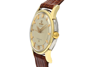 OMEGA, Constellation, Chronometer, Cal 551, Serial no. 17012467, Ref no. KO 14381, Case no. 14381 2 SC, men´s wristwatch, 34,5 mm, gold on steel, self winding, plastic crystal, leather strap, ”Extract of the Archives”, manufactured 21.04.1960, delivered to Sweden.
