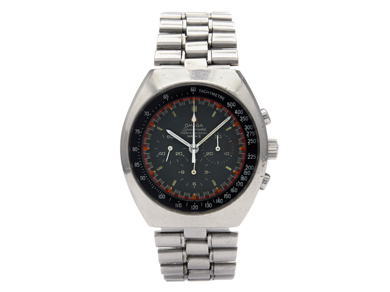 OMEGA, Speedmaster Professional, Mark II (T SWISS MADE T), "Tachymetre", Cal 861, Serial no. 30590355, Ref no. ST 145.014, Case no. 145.014, chronograph, men´s wristwatch, 41,5 mm, steel, manual winding, mineral crystal, original bracelet, folding clasp, Ref no. 1162/154, "Extract of the Archives", manufactured 17.09.1970, delivered to Sweden.