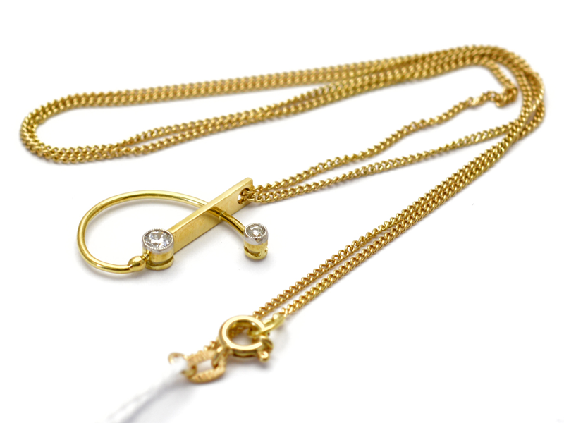 Neck jewellery "curb" 18K 3,1g 43cm with diamonds 1xca.0,08ct 1xca.0,02ct