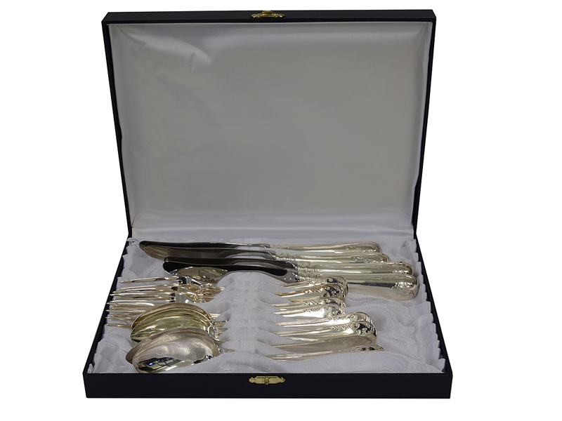 Cutlery S830, 749g, Table forks 4 items 185mm, Table knives 4 items 210mm, Table spoons 4 items 182mm, model Old- French, in casket
