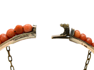 BANGLE, gilt metal, coral, probably England, Victorian, Ca 1900, 5x6 cm, weight 21,5 g, safety chain.