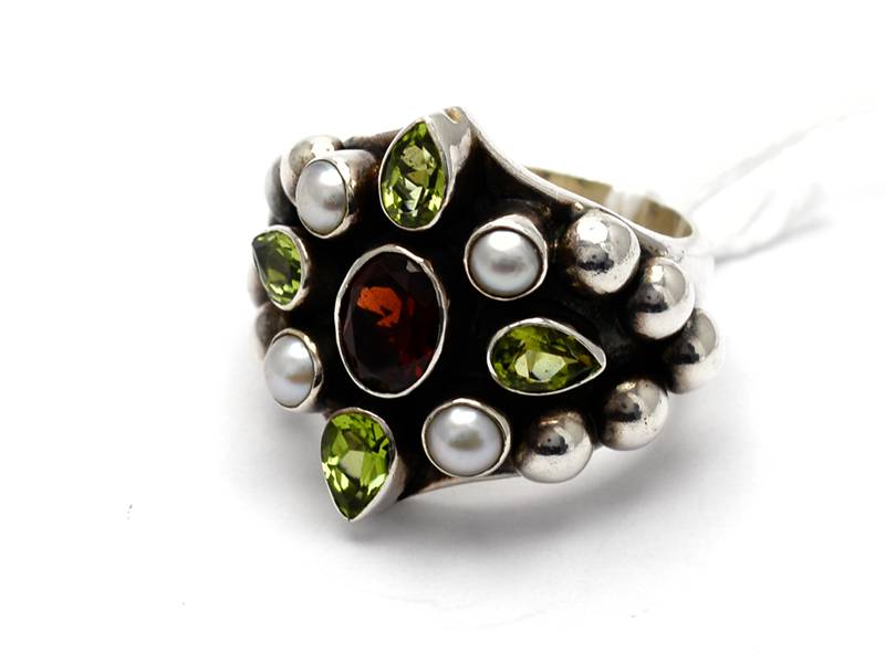 Ring with stones and pearls S925 20,4g Ø18¾ GEO design