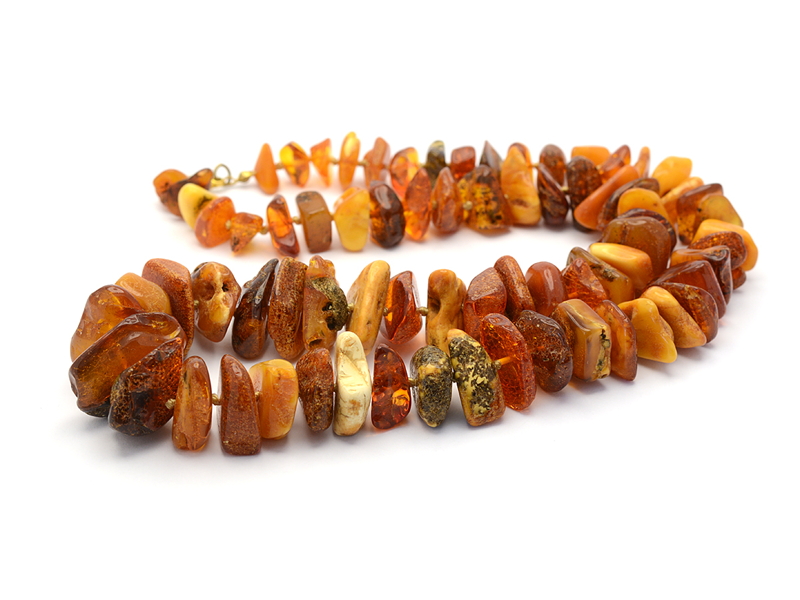 NECKLACE, amber, clasp in metal, length 62 cm.