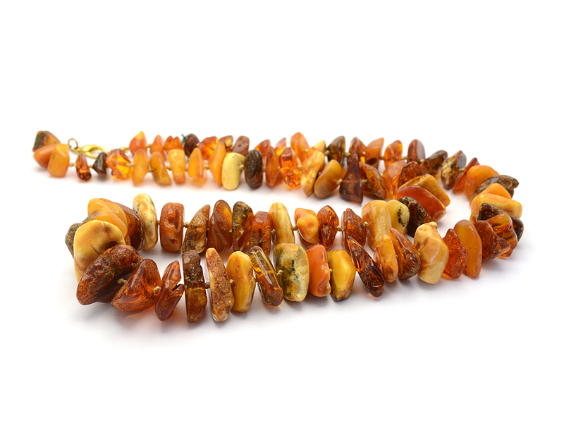NECKLACE, amber, clasp in metal, length 68 cm.