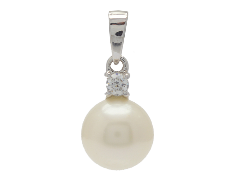 PENDANT, 14K white gold, freshwater pearl 8 mm, brilliant cut diamond 0,07 ct, length 1,6 cm, weight 1,2 g.