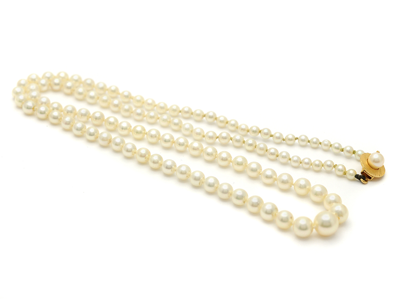 PEARL NECKLACE, graduated, 3,2 - 7,1 mm cultured pearls, length 50 cm, 18K goldclasp with 4,9 mm pearl.