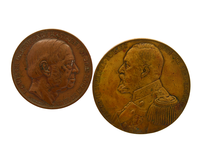2 MEMORABILIAS, bronze, Frimurarorden, total weight 141,0 g, bägge by Adolf Lindberg.