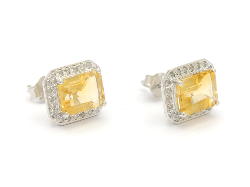 EARRINGS, 14K white gold, 2 citrines approx 3,00 ctw, 44 single cut diamonds approx Cr/ P, weight 2,3 g, backings in silver