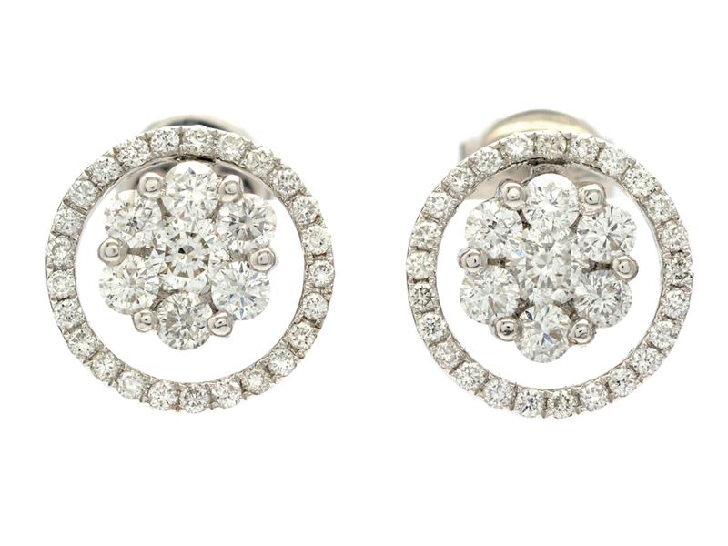 EARRINGS, 18K white gold, brilliant cut diamonds approx 1,00 ctw, approx W(H)/SI, pushback, weight 3,2 g.