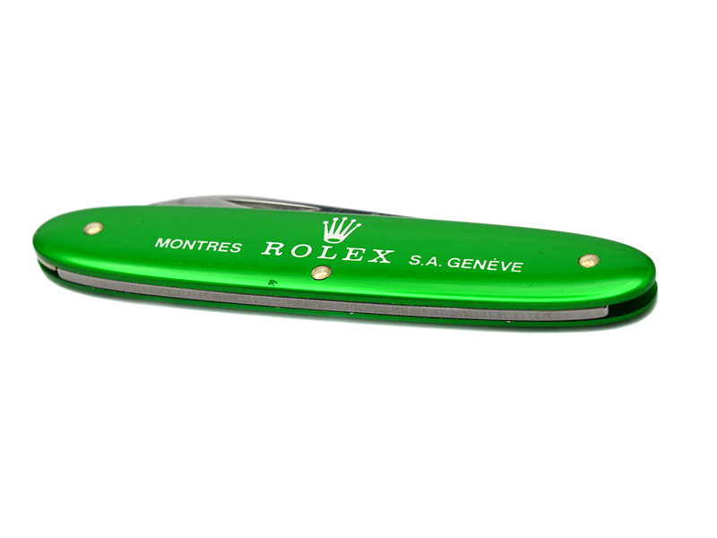 KNIFE, Rolex, green, 84 x 19 mm, damaged.