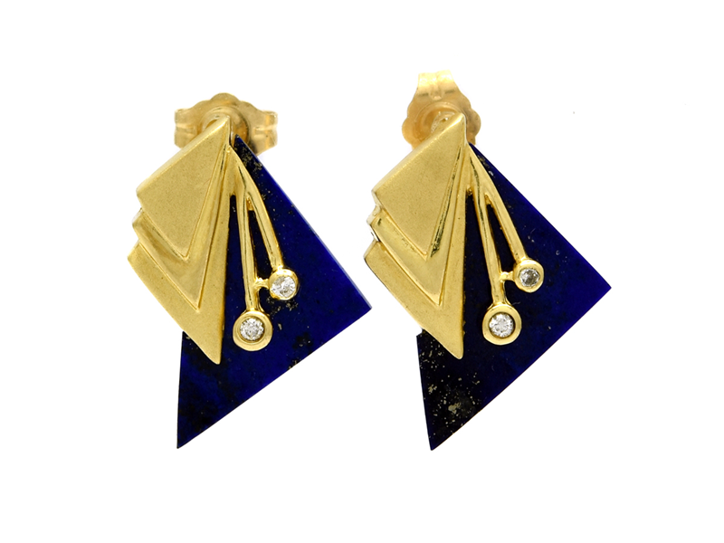 EARRINGS, 14K gold, lapis lazuli, 4 brilliant cut diamonds approx 0,03 ctw pushback, weight 4,5 g.