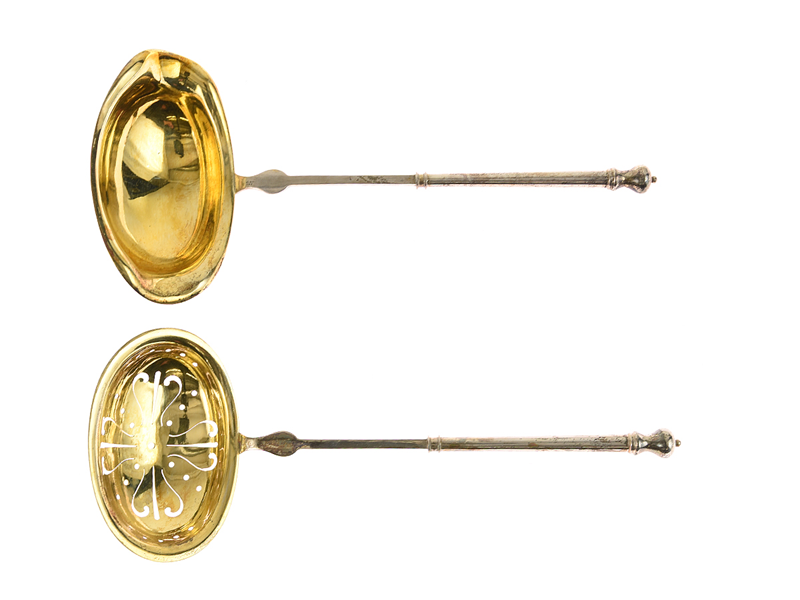 GRAVY-LADLE AND SUGAR CASTOR, silver, partly gold plated, Malmö 1895, weight 60,1 g, original box.