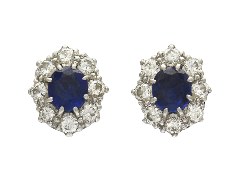 EARRINGS, 18K white gold, sapphires, 16 brilliant cut diamonds approx 0,35 ctw, approx TW/VS-SI, pushback, weight 2,8 g.