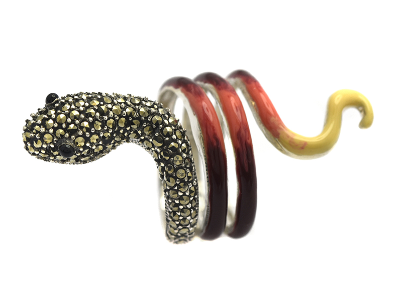 RING, sterling silver, snake, enamel, marcasites, size 17,5 mm, weight 8,6 g.