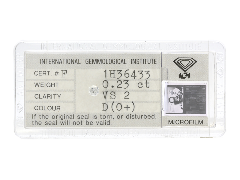 DIAMOND, brilliant cut 0,23 ct, River(D)/VS2, IGI certificate