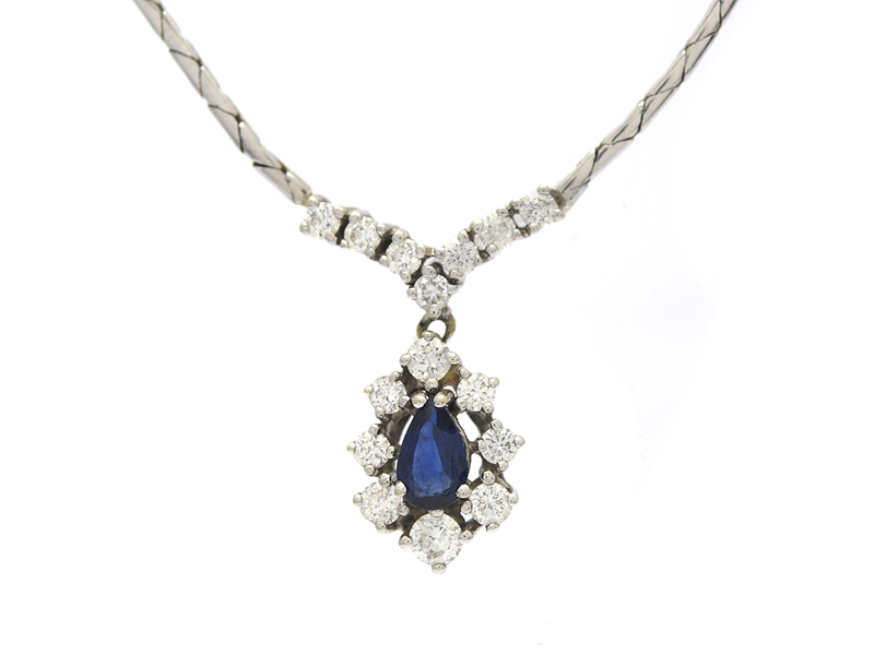 NECKLACE, 18K white gold, marquise cut sapphire, 15 brilliant cut diamonds approx 0,50 ctw W/VS, length 42 cm, weight 8,6 g.