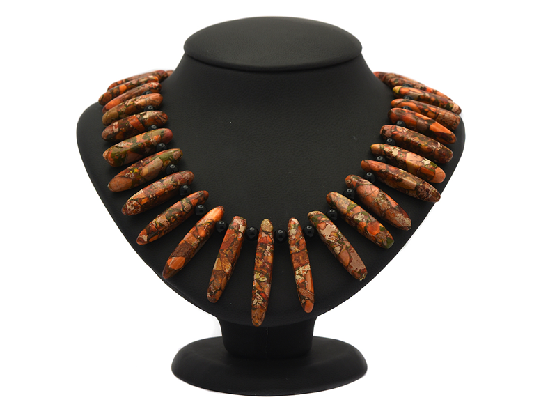 NECKLACE, jasper, black beads, clasp in base metal, length 50 cm, weight 104,6 g.